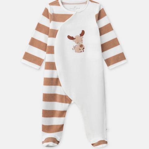 Conçu pour les nuits paisibles d’un nouveau-né, ce dors-bien se porte en automne-hiver. En velours contenant du coton bio et polyester recyclé, il assure chaleur et douceur. Ses rayures et broderies « câlins » créent un univers tendre et rassurant.