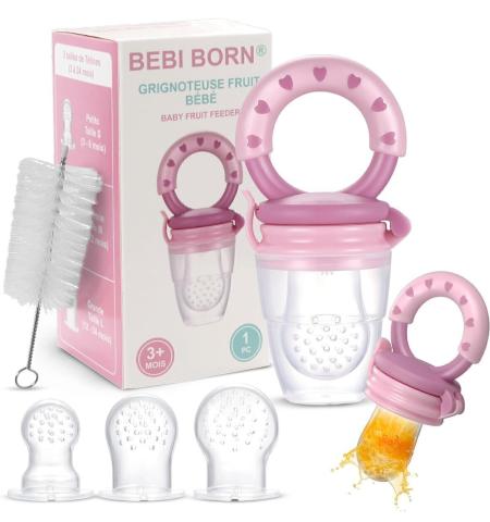 Notre Grignoteuse Bébé permet aux Nourrissons de découvrir le Goût des Fruits et des Aliments en toute sécurité. Lorsque qu'ils machent la tétine, le jus des fruits ou des légumes s'écoule uniformément. Cette Grignoteuse Polyvalente permet d'apaiser leurs Gencives douloureuses.