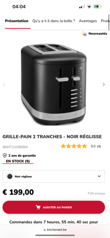 Ce produit est extrait d'une liste de mariage déposée sur Kadolog. Kadolog permet de créer des listes de mariage en toute liberté. Il est possible d'ajouter toutes vos envies cadeaux et de recevoir les dons directement sur votre compte. Avec les dons reçus, vous êtes alors libre d'aller acheter vos produits (comme ce 'GRILLE-PAIN 2 TRANCHES - Noir réglisse | KitchenAid BE ') où et quand vous le souhaitez.