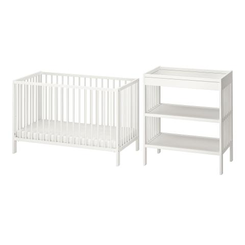 GULLIVER meuble chambre bébé, lot de 2, blanc, 60x120 cm Un véritable lit bébé dans lequel bébé peut dormir en toute sécurité jusqu'à ce qu'il ait l'âge de dormir dans un lit de grand et une table à langer. Parfait quand vous allez accueillir un nouveau membre dans la famille.