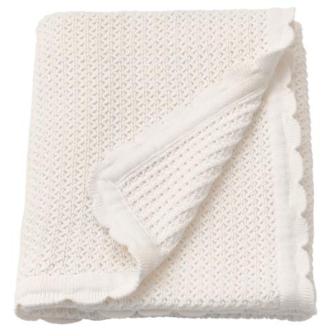 GULSPARV Couverture bébé, blanc, 70x90 cm. Une couverture confortable et douce contre la peau. Tricotée avec un point brioche et en coton issu de sources plus durables, qui ne contient aucune substance chimique.