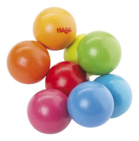 Votre bébé sera fasciné par ce hochet magique de HABA aux couleurs joyeuses de l'arc-en-ciel. Les boules en bois sont reliées entre elles par un solide élastique.