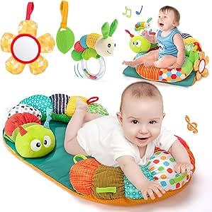 hahaland Jouet Bebe 0-3 6 9 Mois, 3 en 1 Tummy Time Chenille Coussin Bebe Tapis d eveil Bebe avec Anneau Dentition Bebe, Hochet et Miroir, Jouet d'activité et développement pour Nouveau-Nés 0-6Mois : Amazon.fr: Jeux et Jouets