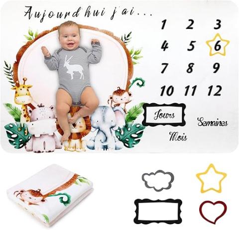 HALOVIE Couverture Etape Bébé en Français Tapis Mois Bebe Garçon Ou Fille Couverture Cadeau Personnalisé Bébé Unisexe Monthly Milestone Baby-Shower Doux Confortable Tapis Photo Bebe 100x150cm : Amazon.com.be: Bébé et Puériculture