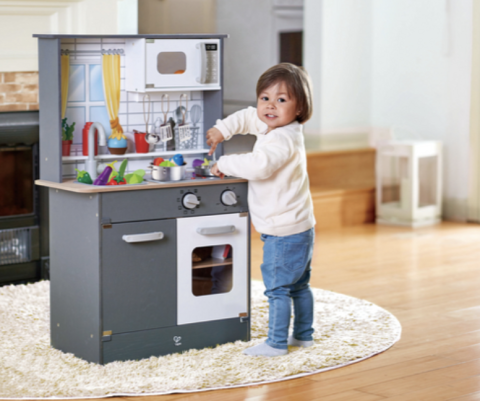 Votre enfant deviendra un véritable chef cuistot avec cette cuisine en bois de Hape. À table !
