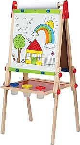 Hape Jouet - Chevalet Tout-en-Un en Bois - Tableau Double Face Enfant - Tableau Noir et Tableau Blanc Aimanté avec Rouleau de Papier - à partir de 3 ans - Ajustable en Hauteur - Filles et Garçons : Amazon.com.be: Fournitures de bureau