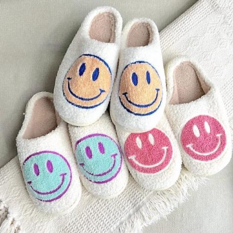 Les pantoufles avec le smiley bleu et blanc!