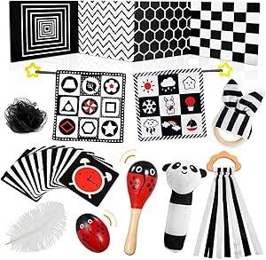 HappyKidsClub Jouet Bebe 0-12 Mois, Livre Carte Montessori Sensoriel en Tissu Noir et Blanc Bebe Cadeau Naissance Fille Garcon Jouets d'éveil Jeux Bebe : Amazon.fr: Sports et Loisirs