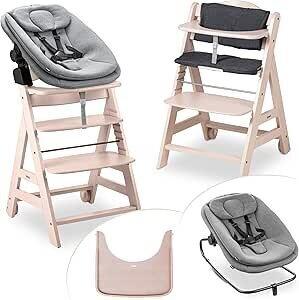 hauck Chaise Haute Bébé Evolutive en Bois Beta+ Newborn Set Highchair Bouncer 3en1 – dès la Naissance avec Transat Bebe, Coussin Assise et Plateau Repas – Whitewashed : Amazon.fr: Bébé et Puériculture