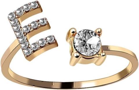 HIJONES Open Initial Letter Ring for Women Stone Adjustable Stackable Alphabet Rings, Gold : Amazon.com.be: Fashion