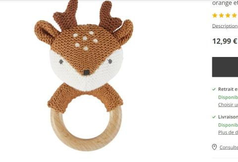 Ce produit est extrait d'une liste de naissance déposée sur Kadolog. Kadolog permet de créer des listes de naissance en toute liberté. Il est possible d'ajouter toutes vos envies cadeaux et de recevoir les dons directement sur votre compte. Avec les dons reçus, vous êtes alors libre d'aller acheter vos produits (comme ce 'Hochet biche ') où et quand vous le souhaitez.
