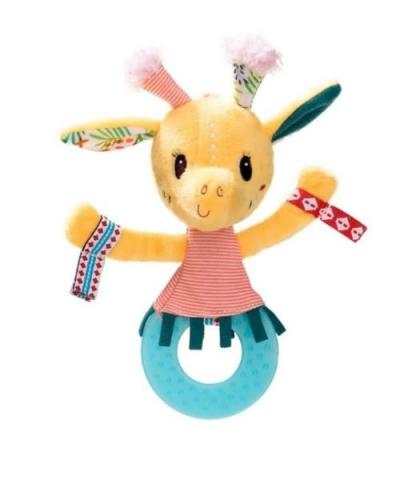 Mélange entre hochet grâce à ses bruit de papier et sa clochette et d'un anneau de dentition, l'anneau de dentition Zia soulagera les poussées dentaires des plus petits.