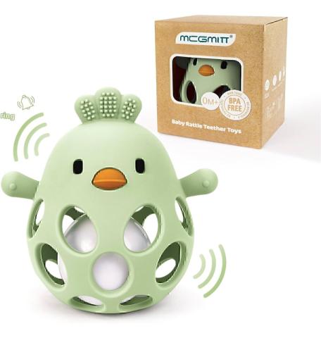 Anneau de dentition en silicone avec hochet - Boule flexible de prise en forme de poussin sans BPA souple et facile à tenir.