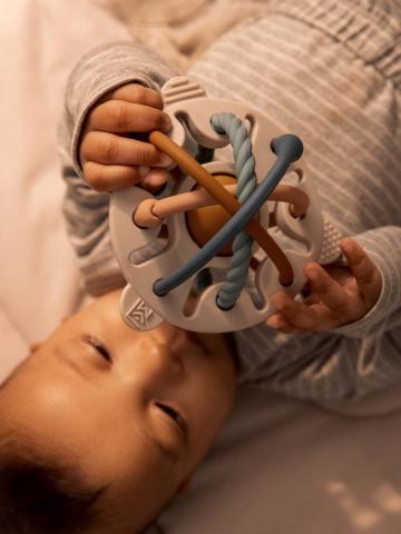 en toute liberté. Il est possible d'ajouter toutes vos envies cadeaux et de recevoir les dons directement sur votre compte. Avec les dons reçus, vous êtes alors libre d'aller acheter vos produits (comme ce 'Hochet Hakim multicolore - Liewood
