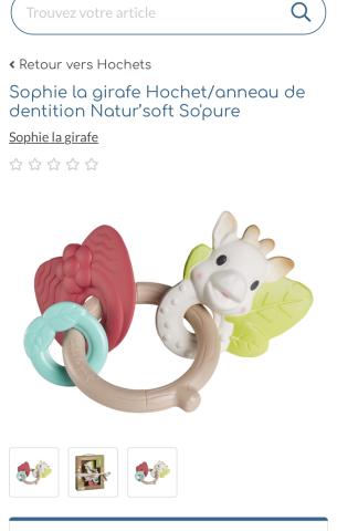 Ce produit est extrait d'une liste de naissance déposée sur Kadolog. Kadolog permet de créer des listes de naissance en toute liberté. Il est possible d'ajouter toutes vos envies cadeaux et de recevoir les dons directement sur votre compte. Avec les dons reçus, vous êtes alors libre d'aller acheter vos produits (comme ce 'Hochet Sophie la Girafe ') où et quand vous le souhaitez.