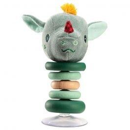 Ce hochet swing vert avec tête en tissu et anneaux en bois FSC convient aux petits à partir de 6 mois.