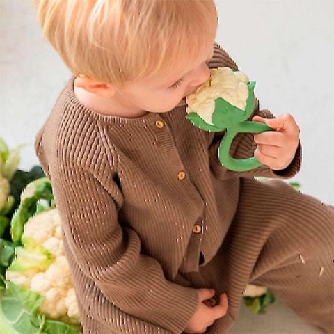 Quoi de mieux qu'un anneau de dentition qui fait du bruit et qui ressemble à un chou-fleur pour divertir et soulager les futures poussées dentaires du bébé ?