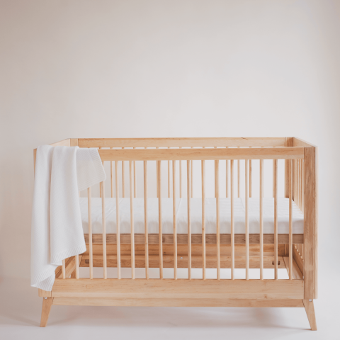 Adjustable baby bed made from solid alder wood. 10 height levels. Naturally oiled, sustainable & handmade in the EU. Mattress not included.