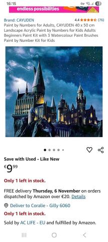 en toute liberté. Il est possible d'ajouter toutes vos envies cadeaux et de recevoir les dons directement sur votre compte. Avec les dons reçus, vous êtes alors libre d'aller acheter vos produits (comme ce 'Hogwarts peinture par numéro