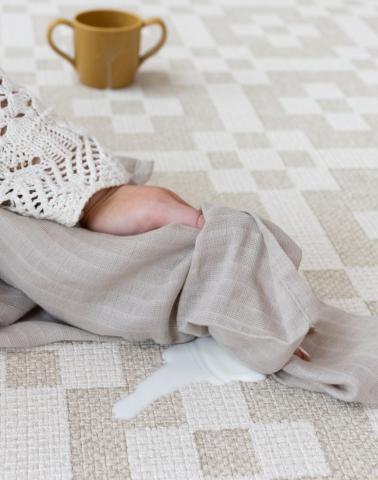 New in 2025, the soft, neutral Holbein playmat effortlessly elevates family interiors. The textured baby playmat utilises natural hues of stone + bleached sand.