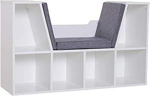 HOMCOM Bibliothèque Banc 2 en 1 Design Contemporain 6 casiers 3 Coussins fournis 102L x 30l x 61H cm Blanc Gris chiné