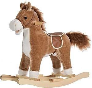 HOMCOM Cheval à Bascule Selle Grand Confort Peluche Courte Douce Bois peuplier Brun dim. 65L x 32,5l x 61H cm : Amazon.com.be: Jouets