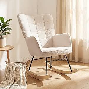 HOMCOM Fauteuil à Bascule, Rocking Chair, revêtement en Imitation Cachemire, Fauteuil Allaitement, Chaise à basule, Structure en Acier, Pieds en Bois Massif, Beige : Amazon.com.be: Cuisine et maison