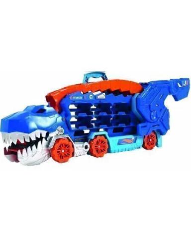 HOT WHEELS TRANSPORTEUR DINO TRANSFORMAB Avale et transporte plus de 20 voitures 1/64 puis se transforme en T-Rex qui rugit et son dos se transforme en pist...