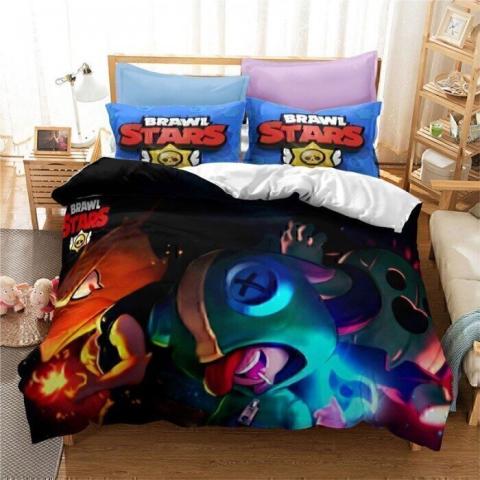 Housse de couette Brawl Star pour lit simple et lit double : Corbac Phénix, Léon et Spike réunis dans le noir