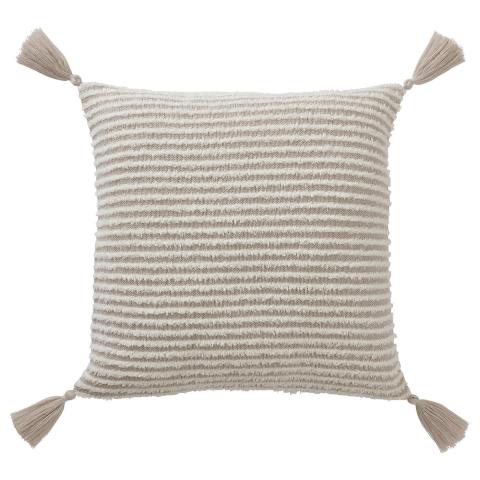 KRYPLJUNG housse de coussin, naturel, 48x48 cm Pompons amusants et petites boucles blanches formant un motif de fines rayures. Cette housse de coussin écru en polyester est agréable au toucher, décorative et facile à retirer et à laver.