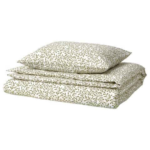 SORGMANTEL housse de couette et 1 taie, blanc/vert, 150x200/50x60 cm Un motif végétal qui rendra votre chambre plus vivante. Cette parure de lit infroissable est fabriquée dans un mélange de polyester recyclé et de coton naturel qui respire et absorbe l'humidité. Taie d'oreiller avec rabat.
