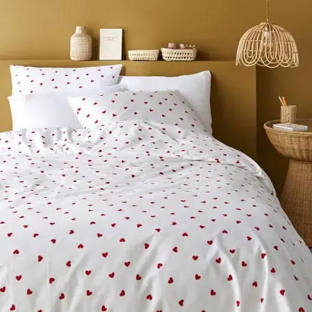 La parure de lit Scacco est un vrai coup de cœur, elle créera une atmosphère douce et romantique dans votre chambre. Une création La Redoute Intérieurs.Le coton fait partie de notre quotidien. On l'aime pour sa souplesse et sa douceur. Facile à vivre, il est idéal pour les lits des petits comme des grands !Description • 100% coton • 50% coton vierge, 50% coton recyclé • 57 fils/cm² • Recto/verso imprimé cœurs sur fond blanc • Base droite boutonnéeEntretien • Température de lavage 40°Dimensions • Housse de couette 140 x 200 cm + 1 taie d'oreiller 50 x 70 cm : 1 personne • Housse de couette 160 x 210 + 1 taie d'oreiller 50 x 70 cm : 1 personne • Housse de couette 200 x 200 cm + 2 taies d'oreiller 50 x 70 cm : 1-2 personnes • Housse de couette 240 x 220 cm + 2 taies d'oreiller 50 x 70 cm : 2 personnes • Housse de couette 260 x 240 cm + 2 taies d'oreiller 50 x 70 cm : 2 personnes • COTON RECYCLÉ. Utiliser du coton recyclé, c'est préserver certaines ressources et réduire...