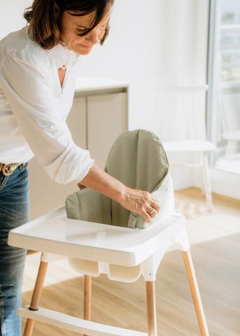 en toute liberté. Il est possible d'ajouter toutes vos envies cadeaux et de recevoir les dons directement sur votre compte. Avec les dons reçus, vous êtes alors libre d'aller acheter vos produits (comme ce 'Housse de coussin pour chaise haute ANTILOP eucalyptus