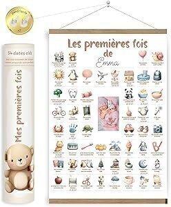 HuBorns - Affiche Mes Premieres Fois Bebe pour Rappeler des Étapes Importantes, Tableau Mes Premières Fois Bébé à Personnaliser, Inclus Bandes Bois pour Accrocher, Parfait comme Cadeau Bebe Naissance : Amazon.fr: Bébé et Puériculture