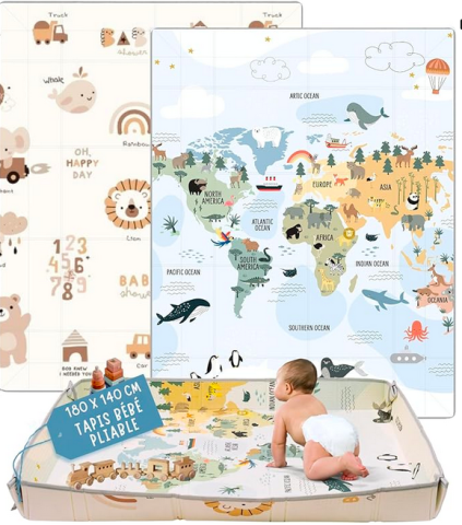Ce produit est extrait d'une liste de naissance déposée sur Kadolog. Kadolog permet de créer des listes de naissance en toute liberté. Il est possible d'ajouter toutes vos envies cadeaux et de recevoir les dons directement sur votre compte. Avec les dons reçus, vous êtes alors libre d'aller acheter vos produits (comme ce 'HuBorns - Tapis Bebe Pliable 180x140, Tapis d'Eveil Bebe Reversible avec Bord Renforcé pour Plus Sécurité, Tapis de Jeux Bebe Epais avec Protection Anti-Chute, Tapis Exterieur Lavable (Carte M) : Amazon.com.be: Bébé et Puériculture ') où et quand vous le souhaitez.