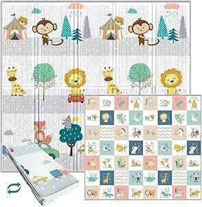HuBorns - Tapis de Jeux Bebe de Motricité 180x200 cm, Pliable, Reversible et Lavable - Bords Cousus pour la Sécurité de Bébé - Tapis de Sol Enfant XXL en Mousse Epais d'Éveil pour Jouer (Alphabet)
