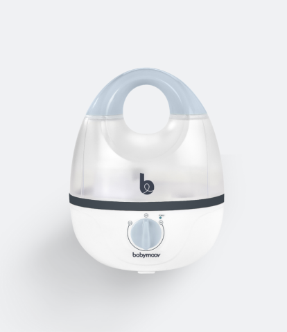 Humidificateur d'air bébé Hygro Babymoov. Humidificateur pour chambre bébé. Air sain pour prévenir les petit maux. Vapeur réglable. Silencieux. Autonomie jusqu'à 18h. Du coucher au réveil de bébé. Arrêt automatique et très simple d'utilisation bouton ON/OFF. Garantie à vie.