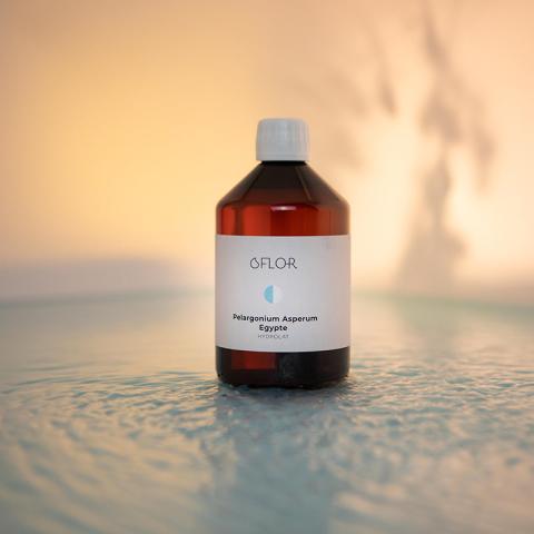 Hydrolat eau florale de Géranium d'Egypte fait fuir les moustiques, réduit les mycoses, favorise une bonne circulation du sang.