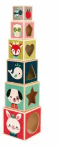 Pyramide 6 cubes Baby Forest (bois) J08016 : Cubes & Pyramides Janod. A la fois jeu de construction pour bébé et jeu d'encastrement, cette pyramide de 6 cubes en bois Baby...