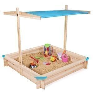 IDMarket - Bac à Sable Kids Bois avec Toit ouvrant Bleu : Amazon.com.be: Jouets