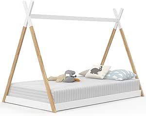IDMarket - Lit tipi Enfant 90 x 190 CM Come avec sommier Bois et Blanc : Amazon.com.be: Cuisine et maison