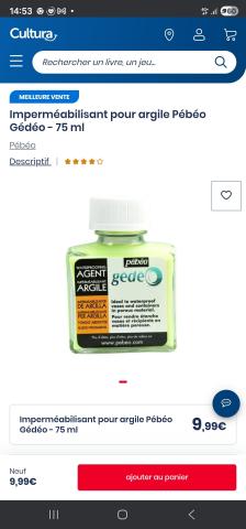 Ce produit est extrait d'une liste de cadeaux (Anniversaire, Noël, ...) déposée sur Kadolog. Kadolog permet de créer des listes de cadeaux (Anniversaire, Noël, ...) en toute liberté. Il est possible d'ajouter toutes vos envies cadeaux et de recevoir les dons directement sur votre compte. Avec les dons reçus, vous êtes alors libre d'aller acheter vos produits (comme ce 'Imperméabilisant pour argile ') où et quand vous le souhaitez.