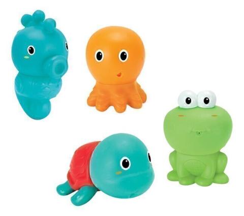 Ces 4 adorables animaux marins sont doux et de taille idéale pour les tout-petits. Bébé peut les remplir d'eau, arroser et surtout s'amuser à l'heure du bain.