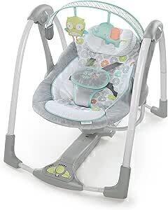 Ingenuity - Balançoire portable Swing 'n Go - Hugs and Hoots, 5 vitesses de swing, 8 mélodies apaisantes, barre à jouets amovible, nouveau-né et plus, gris : Amazon.fr: Mode