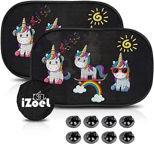 iZoeL Pare Soleil Voiture Bébé Enfant, 2PCS Pare Brise Vitres Latérales, Motif Eléphant Licorne, 8 Ventouses, Sac Rangement, 51 x 31 CM, Universelle - Protection Solaire et UV : Amazon.fr: Auto et Moto
