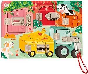 Janod- Animal Cadenas La Ferme-Planche d'Activité-5 Types D'Ouvertures-Jouet en Bois FSC-Dès 3 Ans, J07119, Multicolore, Small : Amazon.com.be: Jouets