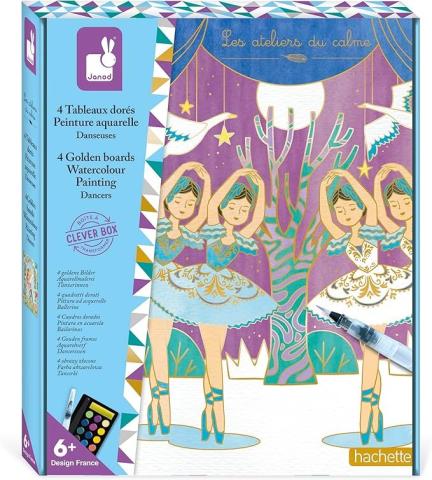 Janod - Coffret Peinture Aquarelle Danseuses - Les Ateliers du Calme - Loisir Créatif - 4 Tableaux Dorure