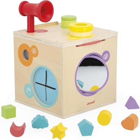 Janod - Cube de Motricité & de Manipulation - Jeu d'Eveil Sensoriel - Boite Sensorielle - Cube d'Activités - 12 Accessoires - Appentissage Formes & Couleurs - Eveiller les Sens - Jouet Bois - 18 Mois+ : Amazon.fr: Jeux et Jouets