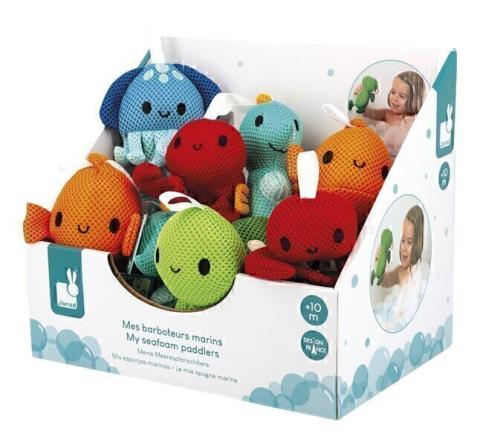 Votre bébé veut déjà se laver tout seul ? Ces chouettes éponges de Janod sont idéales ! En forme de poissons colorés : non seulement pratiques, mais aussi amusantes !