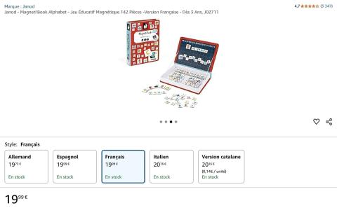 en toute liberté. Il est possible d'ajouter toutes vos envies cadeaux et de recevoir les dons directement sur votre compte. Avec les dons reçus, vous êtes alors libre d'aller acheter vos produits (comme ce 'Janod magnéti’book alphabet
